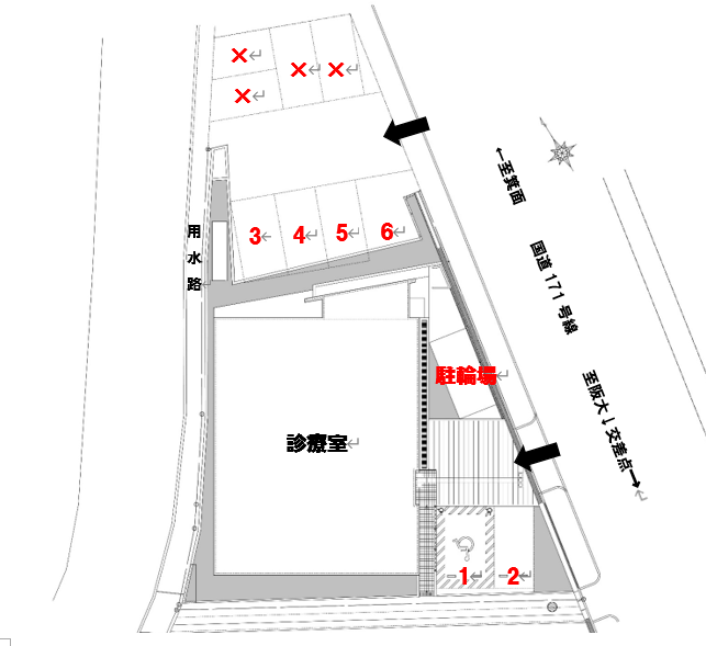 当駐車場が満車の場合は近隣の駐車場をご使用いただきますので、混み合う時間帯などは公共交通機関でのご来院にご協力くださいますと幸いです。