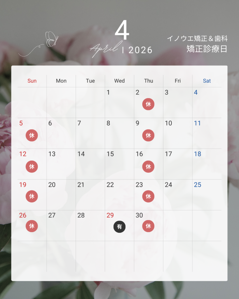 ◆4/29は祝日ですが、通常水曜日の時間帯で診療いたします。