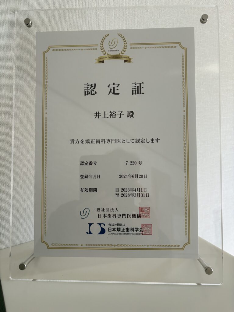 こんにちは。イノウエ矯正&歯科です。 ようやく、当院全員の日本矯正歯科学会の資格証を並べて掲示することができました。“3人寄れば文殊の知恵!” 複数で検討して、より良い治療方針を考え出せることを、さらに日本歯科専門医機構認定の口腔外科専門医... -