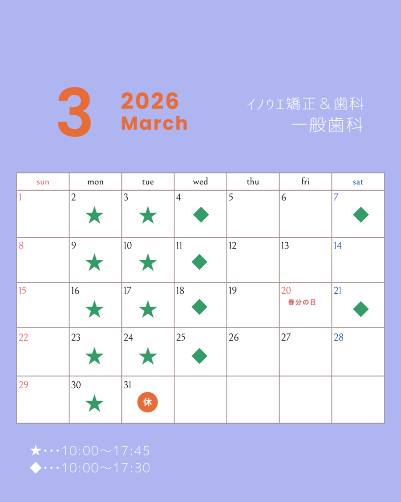 3月の診療日カレンダー【矯正歯科】