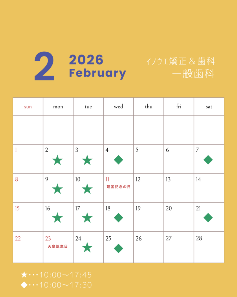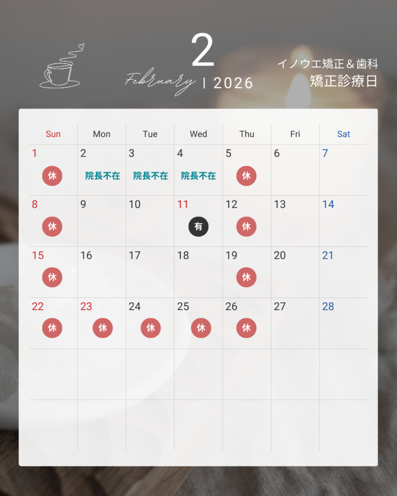 2月の診療日カレンダー【矯正歯科】